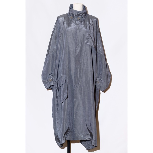 SHIRIN GUILDのコートです。 生地はポリアミドとリネンを使用。グレーで、金属のようなポリアミドの光沢感と、リネンのネップが相まって、類を見ないテクスチャーを作っています。 こうした実験的な生地は90年台のシリンの服にしばしば見られますが、とても現代的な印象を受けるのでスタイリングも一際楽しめるアイテムです。 春夏向けの生地なので、ショートパンツなどと合わせて着るのもお勧めです。 シルエットはイッセイミヤケの名作『イカコート』を思わせる広い身ごろに短い袖の組み合わせ。 たっぷりと使われた生地の生むボリューム感や陰影は、動きの中でより魅力的に見えます。 COLOR : GREY ORIGIN : ENGLAND COMPOSITION : 54% POLYAMIDE 46% LINEN SIZE : ONE 着丈 : 118cm 身幅 : 100cm 肩幅 : 101cm 袖丈 : 31cm コンディションは8/10、僅かに使用感はありますが、目立つ汚れやダメージは無い美品です。 他のサイトでも出品しているため、既に売り切れとなっている場合がございますので予めご了承ください。 ご不明な点がございましたらお気軽にお問い合わせくださいませ。 どうぞ宜しくお願い致します。