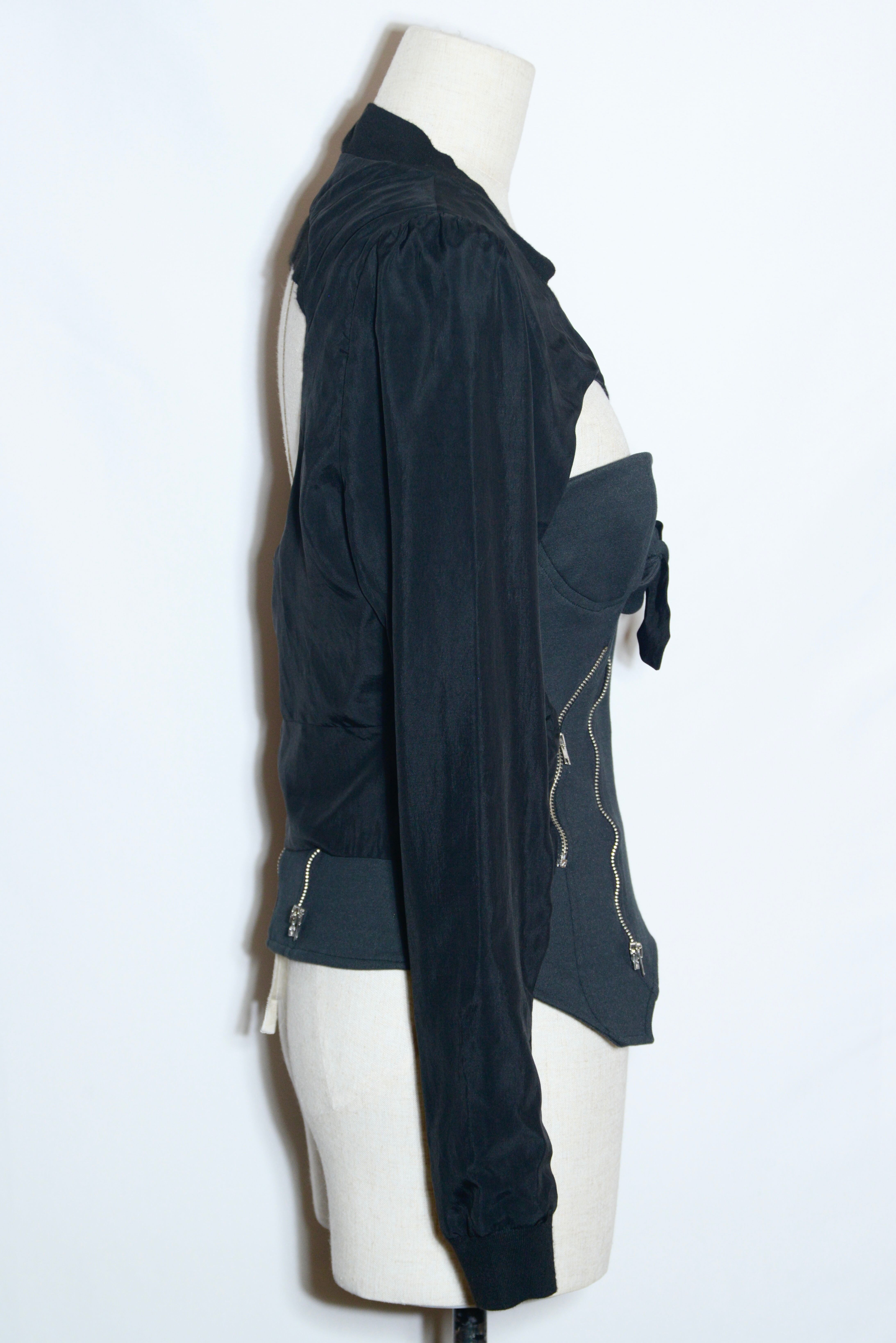 伸縮する素材のコルセットと分離するデザインで、それぞれ単体でも着用できます。コルセット部分にはジップが複数付いており、女性の身体のラインに沿う様に配置されています。
