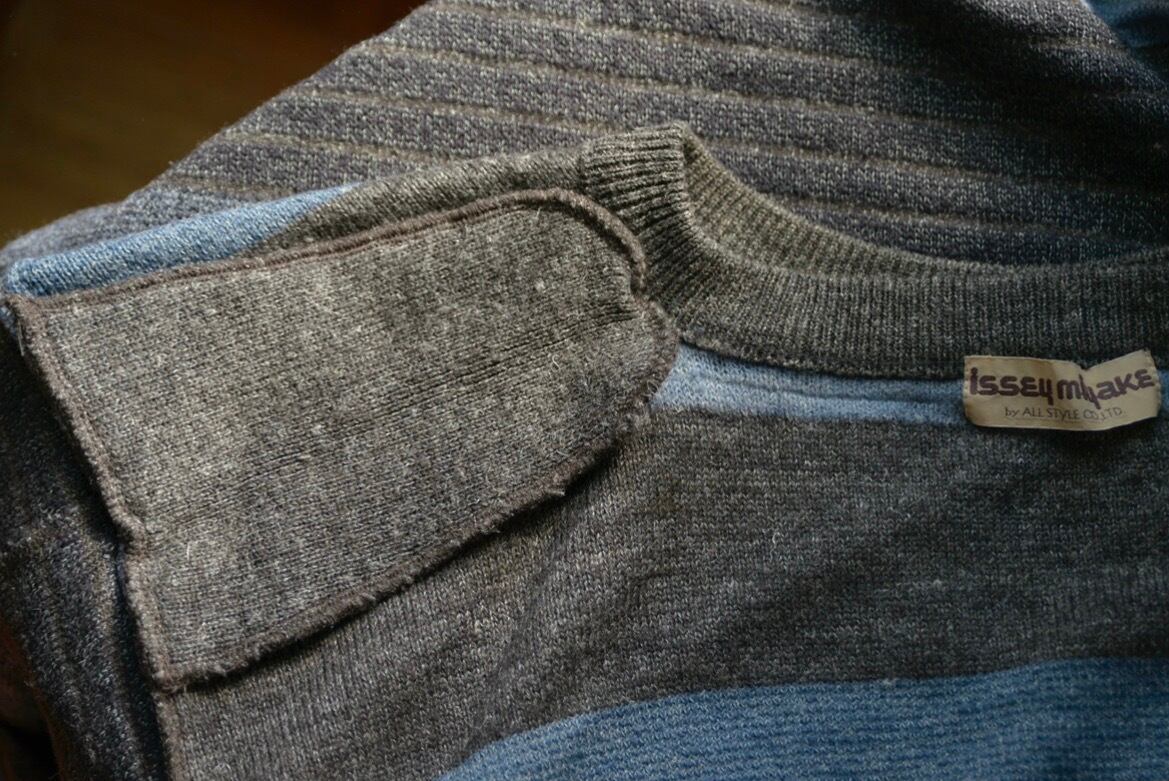 また特徴的なのはニットにも関わらず共生地のショルダーパッドを付ける事で肩のラインを直線的にしています。